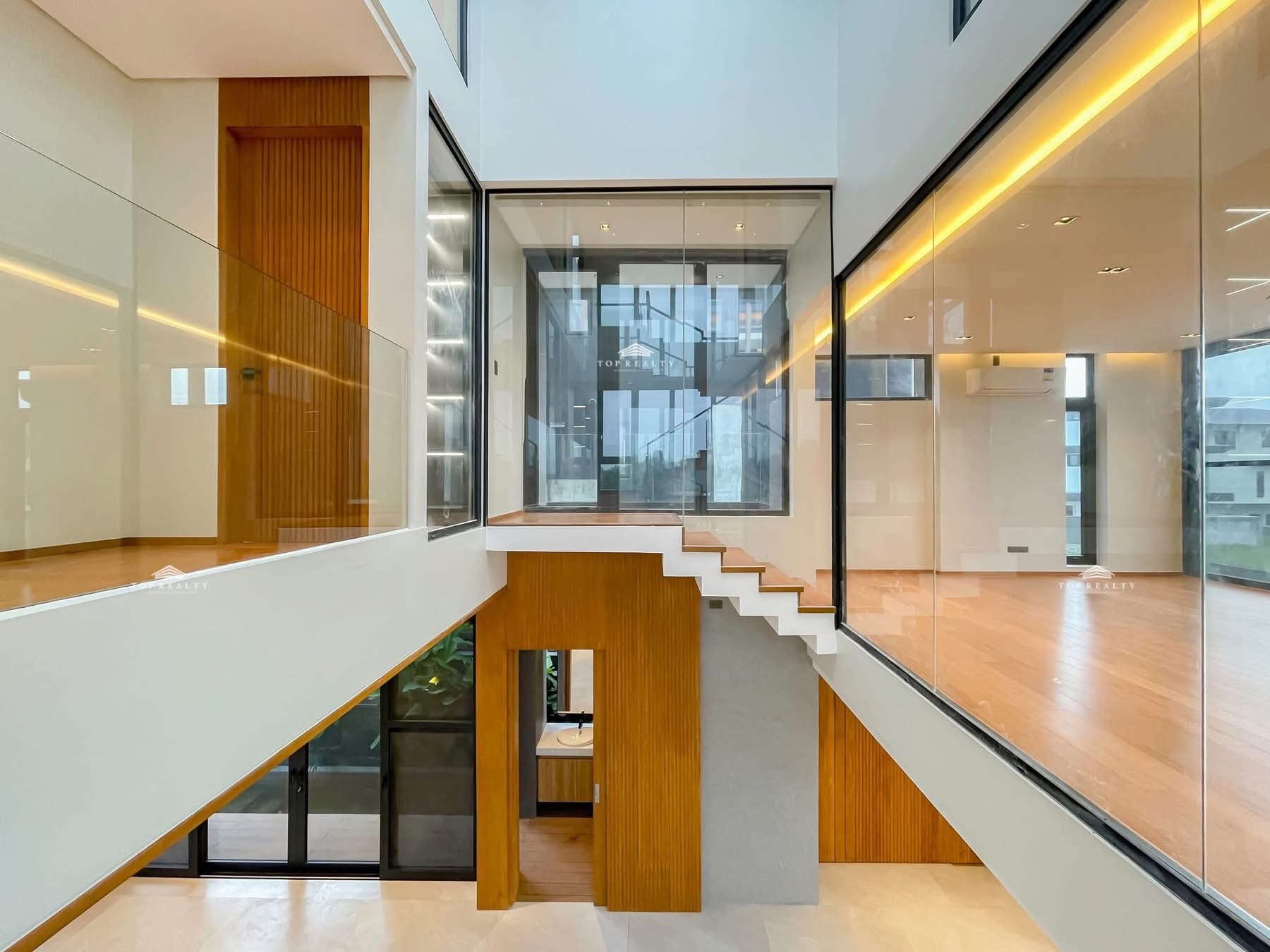 Stairs & Railings: 12mm thick stair & balcony glass railing, solid wood planks on the main staircase